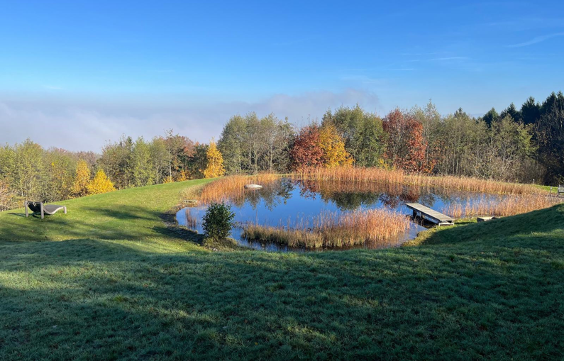 An heißen Sommertagen kann man sich im traumhaft angelegten, gemeinschaftlichen Schwimmteich wunderbare Abkühlung verschaffen.
